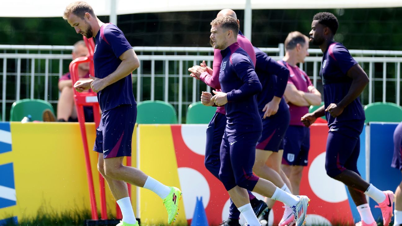 England duo Harry Kane and Kieran Trippier took part in Saturday's final training session on the eve of their Euro 2024 final against Spain.